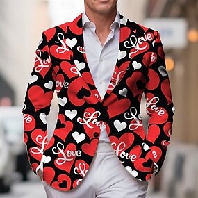 Walentynki Męskie Serce Marynarka Płaszcz Moda Wygodny Oddychający Artystyczny Codzienny Stroje na imprezy wieczorowe Festiwal Kieszeń Druk 3D Guziki Na każdy sezon Wycięcie Długi rękaw Czerwony