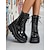 Damskie czarne lakierowane botki na platformie ze skóry z nadrukiem w panterkę, masywne, sznurowane buty w stylu bojowym, idealne na ulicę &noc na mieście