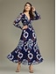 Damskie Sukienka midi Codzienne sukienki Sukienki w stylu boho Bohema Moda miejska Linia A Urlop Ulica Święto Luźna Kwiaty Długi rękaw W serek Khaki Lato Wiosna