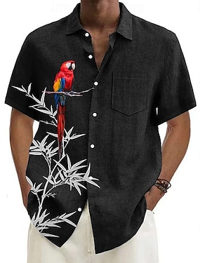 Męskie Ptak Papuga Koszula hawajska Zapinana na guziki koszula Koszula Aloha Krótki rękaw Hawajskie Urlop Święto Stroje plażowe Lato Wiosna Wieczorne Druk 3D Koszula z lnu Biały
