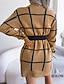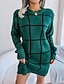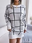 Damskie Sukienka mini Sukienka sweterkowa Moda Nowoczesny Codzienny Święto Wyjściowe Regularny Kratka Długi rękaw Półgolf Biały Zielony Khaki Wiosna Jesień Zima