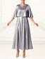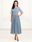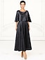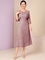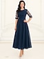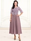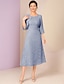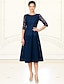 Sukienka w kształcie litery A dla Matki Panny Młodej Elegancka Kołnierzyk Crew Długość Kostki Koronkowy Połowa Rękawa z Jednolitym Kolorem