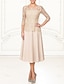 Sukienka Matki Panny Młodej Elegantna Okrągły Dekolt Długości Herbaty Koronkowy Krótki Rękaw z Lśnieniem