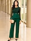 Dwuczęściowa Kombinezon Sukienka dla matki panny młodej Formalny Elegancja Zabytkowe Półgolf Do kostki Poliester Długi rękaw z Kolorowy blok