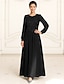 Krój A Sukienka dla matki panny młodej Mała czarna sukienka Puszysta Błyszczące Półgolf Do kostki Szyfon Z cekinami Długi rękaw z Cekin