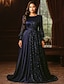 Krój A Sukienka dla matki panny młodej Elegancja Zabytkowe Puszysta Półgolf Sięgająca podłoża Poliester Długi rękaw z Cekin