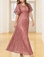 Syrenka  Suknie Quinceanera w stylu trumpet Elegancka sukienka Ślubna Gość Weselny Długość kostki Krótki rękaw Dekolt okrągły Poliester z haftem