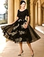 Ołówkowa / Kolumnowa Sukienka dla matki panny młodej Mała czarna sukienka Puszysta Błyszczące Półgolf Do kolan Szyfon Z cekinami Rękaw 1/2 z Cekin
