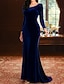 Syrena Ołówkowa / Kolumnowa Sukienka dla matki panny młodej Elegancja Zabytkowe Impreza Półgolf Sięgająca podłoża Aksamit Długi rękaw z Ozdoby z pereł Dodatki kryształowe