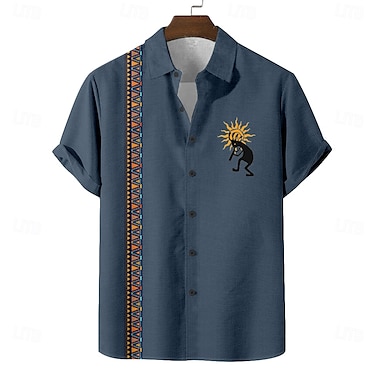 Męskie Geometryczny Etnické Kokopelli Koszula Codzienna koszula Zapinana na guziki koszula Krótki rękaw Vintage Retro Urlop Święto Streetwear Lato Wieczorne Druk 3D Jedna kieszeń z przodu Koszula z