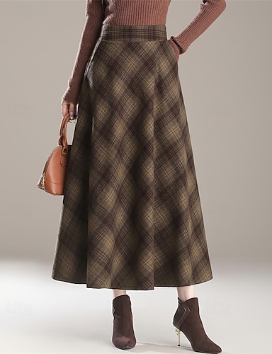 Damskie Elegancja Zabytkowe Maxi Średni Talia Spódnice Nieelastyczny Niebieski Czarny Khaki Bordowo-czerwony Jesień Poliester