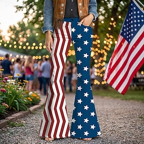 250. rocznica USA Retro / vintage 1970 Spodnie Spodnie z dzwonkiem Hipisowskie Dyskoteka Wysoka talia Strój na bal maskowy Damskie Bal maskowy 4 lipca Impreza Dzień Niepodległości Dla dorosłych