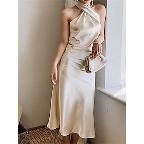 Damskie Sukienka midi Satynowa sukienka Sukienka na imprezę Sukienka z dekoltem halter Elegancja Moda Nowoczesny Na zewnątrz Urlop Impreza Szczupła Równina Bez rękawów Kantarka Beżowy Lato Wiosna