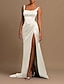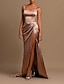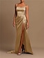 Plażowa Suknia wieczorowa mermaid Seksowna Sukienka Gość Weselny Święta Tren bez rękawów Na ramieniu Sukienka druhny satyna z marszczonym rozcięciem Sukienka maskarada