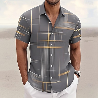 Męskie Geometryczny Wzór kratkowany Kolor gradientu Koszula Zapinana na guziki koszula Krótki rękaw Moda na co dzień Urlop Święto Streetwear Lato Wiosna Wieczorne Druk 3D koszule z kołnierzykiem Szary