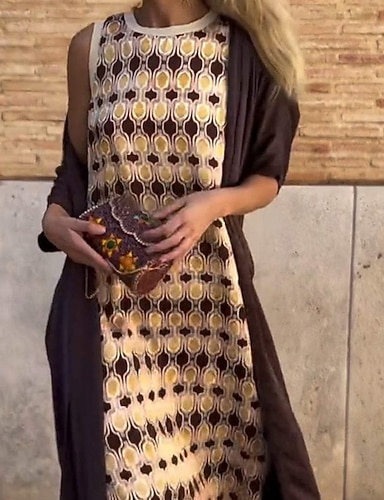 Damskie Długa sukienka sukienka maxi Zestaw sukienek Sukienka z nadrukiem Moda Nowoczesny Urlop Święto Weekend Regularny Kwiaty Rękaw 3/4 Półgolf Brązowy Jesień