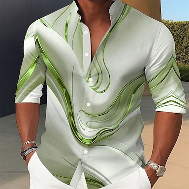 Męskie Geometryczny Gradient Falowane Koszula Koszula ze stójką Długi rękaw Moda na co dzień Na co dzień Święto Wiosna Jesień Kołnierzyk chiński Stójka Druk 3D Koszule zapinane na guziki Czerwony