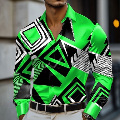 Męskie Geometryczny Kolorowy blok Niejednolita całość Koszula Satynowa koszula Koszule eleganckie Długi rękaw Vintage Retro Urlop Na co dzień Lato Wiosna Jesień Wieczorne Druk 3D Koszule zapinane na
