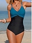 Damskie Stroje kąpielowe Jeden kawałek Monokini Kostium kąpielowy Odkryte plecy Wyszczuplenie brzucha Wysoka talia Szczupła Urlop Stroje plażowe Kolorowy blok Dekolt w kształcie litery U Bez rękawów