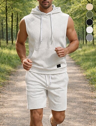 Męskie Dres Strój do biegania Stroje treningowe Ściągana na sznurek 2-częściowa Solidne kolory Zestaw odzieży sportowej Lato Wiosna Czarny Biały Trening w siłowni Jogging Bieganie Odprowadza wilgo