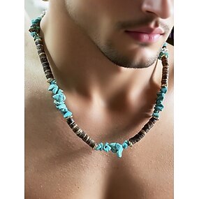 Męski naszyjnik z koralików z naturalnego kamienia z akcentami turkusowymi – biżuteria w stylu boho na plażę, idealna do codziennych stylizacji, na festiwale i letnie wakacje