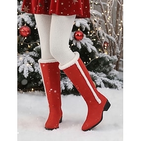 Damskie czerwone kozaki zamszowe do kolan – eleganckie zimowe buty z podszewką z koziej skóry, idealne na świąteczne stylizacje, spacery w chłodne dni i świąteczne spotkania