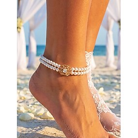 damska bransoletka na kostkę z imitacji pereł z kryształowym akcentem, elegancki wielokolorowy koralikowy wzór, regulowana biżuteria na kostkę na plażowe wesela, letnie przyjęcia, suknie ślubne i wakacyjne