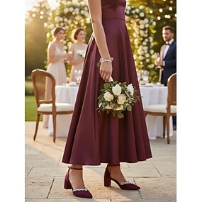 bordowe satynowe półbuty damskie typu slingback - buty wizytowe ze spiczastym noskiem i kryształowym paskiem na koktajlowe przyjęcia i eleganckie wieczorne wydarzenia