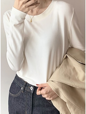 Damskie Podkoszulek Koszulka Jednokolorowe Moda Elegancki Klasyczny Długi rękaw Lejący się dekolt Zwykłe topy Codzienny Wyjściowe Weekend Niebieski Czarny Biały Rumiany róż Wino Lato Wiosna
