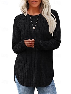 Damskie Podkoszulek Koszulka Cekiny Niejednolita całość Jednokolorowe Zabytkowe Moda Elegancki Długi rękaw Półgolf Okrągły dekolt Zwykłe topy Codzienny Weekend Szary Wiosna Jesień