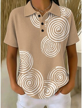 Damskie Koszulki polo waflowe Graficzny Geometryczny Zabytkowe Elegancki Klasyczny Krótki rękaw Kołnierz polo Zwykłe topy Codzienny Niebieski Czarny Khaki Lato Wiosna