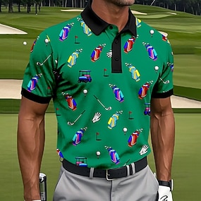 Męskie Graficzny Golf Koszulki sportowe polo Krótki rękaw Koszulki polo Koszule z kołnierzykiem Codzienny Athleisure Guziki Lato Zielony 1# Zielony 2#