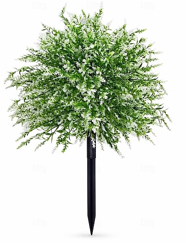 20-calowy sztuczny palik lawendowy do dekoracji zewnętrznej w kolorze białym &trawnik, wytrzymały plastik, odporny na blaknięcie, dekoracja na cały sezon