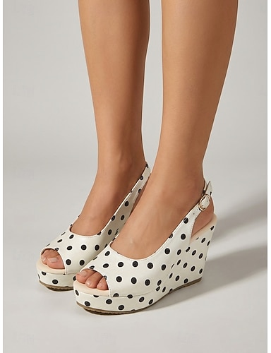 damskie sandały na koturnie w groszki retro - eleganckie białe &Czarne szpilki z odkrytymi palcami i platformą, z paskiem od pięty, idealne na luksusowe rejsy i imprezy na pokładzie &odzież letnia na