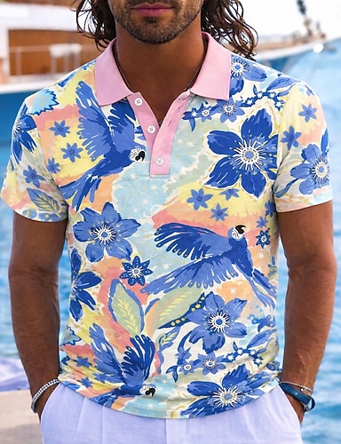 Męskie Zwierzę Hawajskie koszulki polo Krótki rękaw Koszulki polo Klapa Ośrodek wczasowy Athleisure Ubrania wakacyjne Druk 3D Guziki Wiosna i lato Niebieski Żółty Rumiany róż
