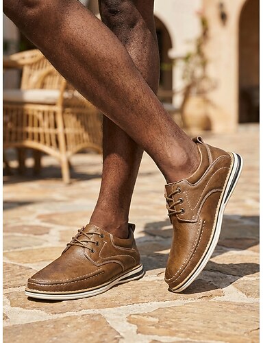 Brązowe, sznurowane, męskie, casualowe półbuty typu derby, lekkie i wygodne obuwie do chodzenia na świeżym powietrzu, na wakacje, na letni wypoczynek, na weekendowe wyjścia i do swobodnego stylu dżentelmena