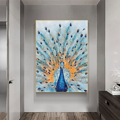 pawie płótno ręcznie malowane eleganckie pawie dekoracje ścienne żywy ptak ręcznie robione zwierzęta dekoracje ścienne malowanie na płótnie paw wystrój domu