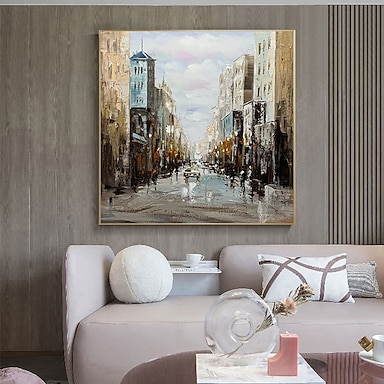 ręcznie robiony abstrakcyjny obraz miejskiej scenerii ręcznie malowany obraz olejny sztuka ścienna oryginalny pejzaż miejski obraz olejny na płótnie do dekoracji ścian w salonie zachód słońca sztuka