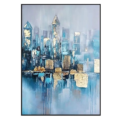 Ręcznie robiony, oryginalny obraz olejny z pejzażem miejskim na płótnie, dekoracja ścienna kolorowe budynki z rozciągniętą ramą/bez malowania na wewnętrznej ramie