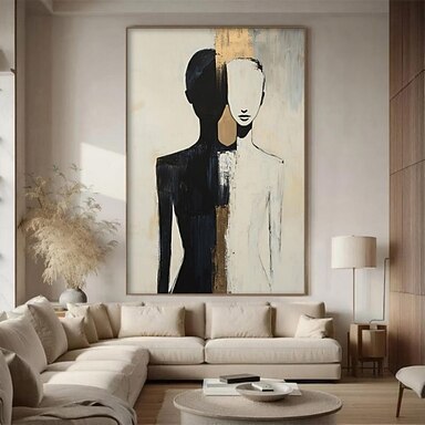 Ręcznie malowany obraz olejny na płótnie, dekoracja ścienna, abstrakcyjny, czarno-biały, postać, salon, przedpokój, dekoracja domu, zwinięty, bez ramy, nierozciągnięty obraz