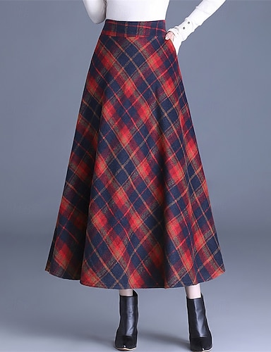 Damskie Elegancja Retro / vintage Maxi Wysoka talia Spódnice Kratka Kolorowy blok Kieszeń Długie Średnio elastyczny Codzienny Codzienne Niebieski Wino Khaki Jesień 100% poliester