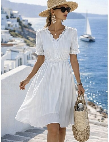 Damskie Sukienka mini Biała sukienka Sukienka A line Codzienny Codzienny Regularny Równina Krótki rękaw W serek Biały Lato