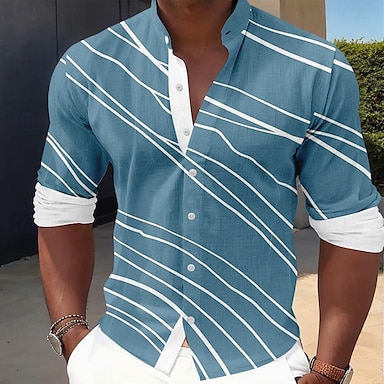 Męskie Geometryczny Gradient Tenké Koszula Koszula ze stójką Koszula casualowa Długi rękaw Biznesowy swobodny Urlop Dom Codzienny Lato Wiosna Kołnierzyk chiński Stójka Druk 3D Koszule zapinane na
