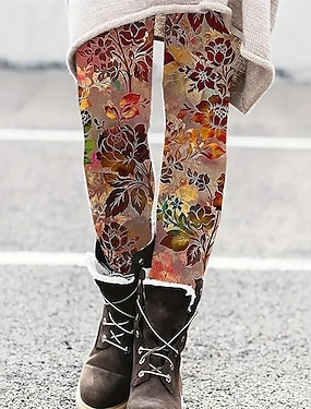 Damskie Spodnie Getry Przytulne legginsy Moda miejska Codzienny Pełna długość Natutalne Kwiat Elastyczny pas Nadruk Wygodne Na zewnątrz Wygodny Na zewnątrz Urlop Święto Ciemnoszary Wino Czarny Jesień