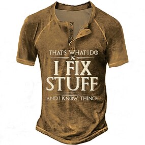 Męskie Koszula Henley Koszulki Graficzny Litera Naprawiam rzeczy i wiem rzeczy Henley Odzież Druk 3D Na zewnątrz Codzienny Krótki rękaw Niejednolita całość Przycisk w dół Moda Designerskie Elegancki