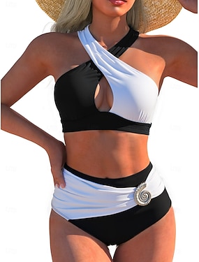 Damskie Stroje kąpielowe Bikini 2 szt Majtki Kostium kąpielowy Szczupła Odkryte plecy Urlop Stroje plażowe Kolorowy blok Kantarka Bez rękawów Kostiumy kąpielowe