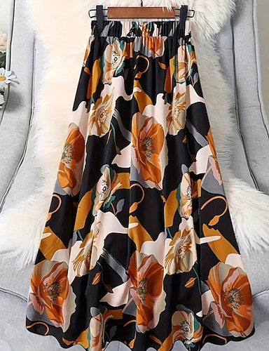 Damskie Spódnica wakacyjna Bohema Moda Codzienny Maxi Wysoka talia Spódnice Kwiaty Nadruk Średnio elastyczny Codzienny Ulica Szałwiowy Czarny Żółty Fioletowy Wiosna Poliester