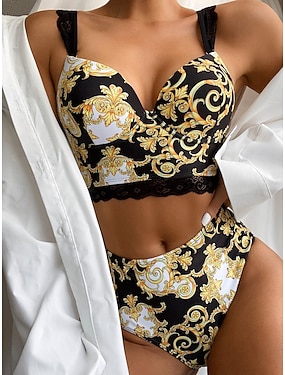 Damskie Stroje kąpielowe Bikini Bezczelny Kostium kąpielowy Urlop Moda Graficzny Geometryczny Kantarka Bez rękawów Kostiumy kąpielowe