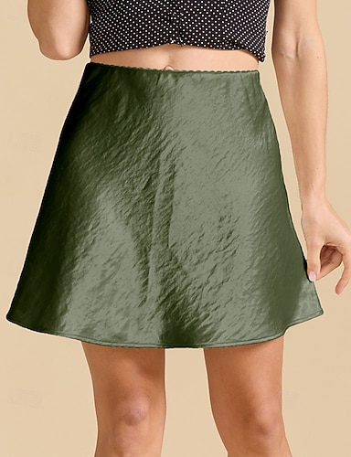 Damskie Spódnice satynowe Moda Codzienny Mini Wysoka talia Spódnice Równina Ściągana na sznurek Średnio elastyczny Codzienny Ulica Wino Szałwiowy Czarny Złoty Lato Satyna Poliester