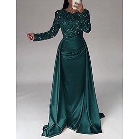 Suknia Wieczorowa Fason A Sukienka Elegancka Formalna Impreza Koktajlowa Z Długim Rękawem Wysoki Dekolt Jesienny Gość Weselny